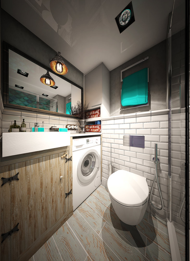 Фотография: Ванная в стиле Лофт, Малогабаритная квартира, Квартира, Московская область, II-49, Панельный дом, 2 комнаты, 40-60 метров, Диана Пономарева – фото на INMYROOM