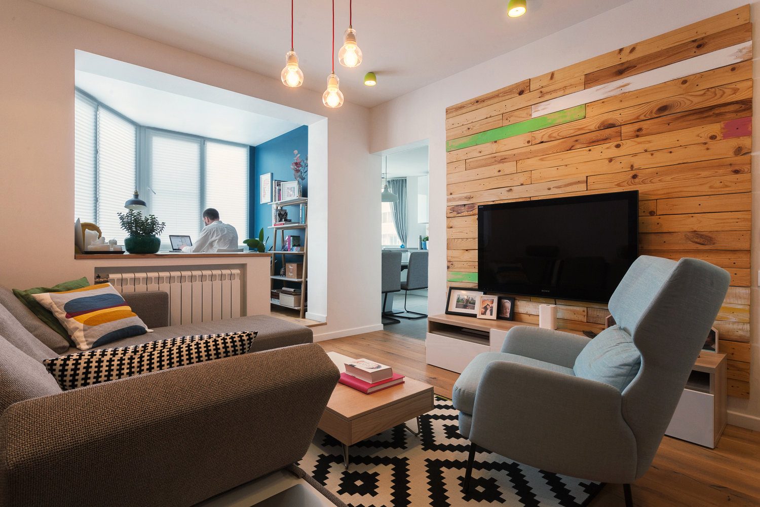 Фотография: Гостиная в стиле Скандинавский, Квартира, Проект недели, Москва, Панельный дом, 2 комнаты, 60-90 метров, П44т – фото на INMYROOM