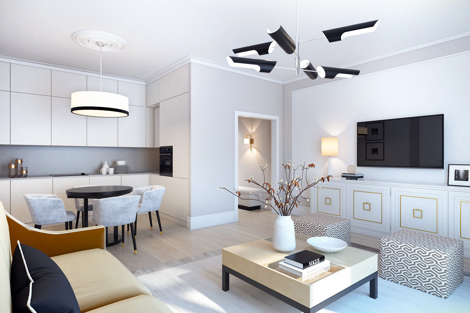 Фотография: Гостиная в стиле Современный, Квартира, Проект недели, Дина Салахова, Подмосковье, Монолитный дом, 2 комнаты, 60-90 метров, ЖК «Ромашково» – фото на INMYROOM