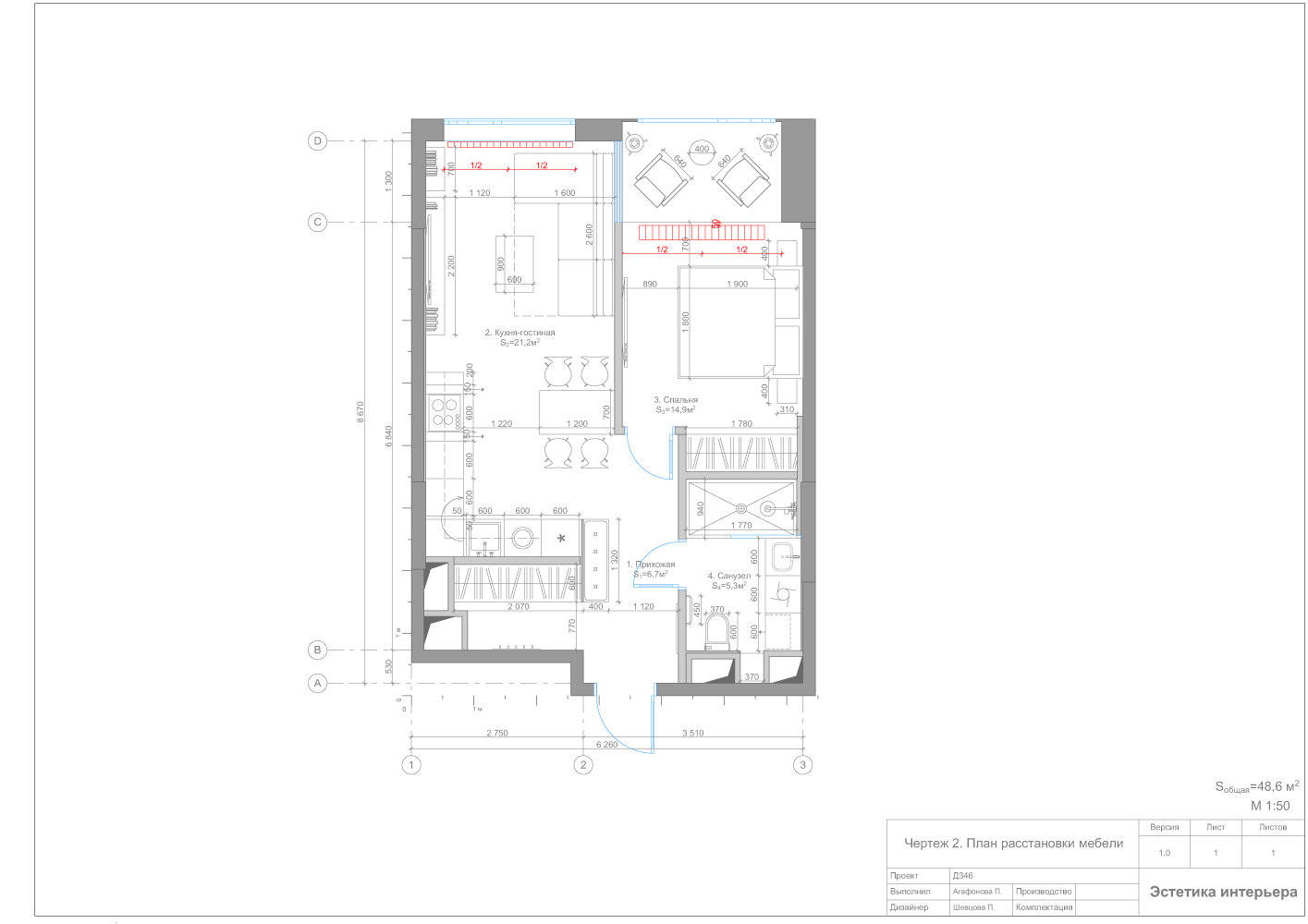 Фотография: Гостиная в стиле Современный, Квартира, Проект недели, Степан Бугаев, 2 комнаты, 40-60 метров, «Точка дизайна», Монолитно-кирпичный, ЖК «Фили Град» – фото на INMYROOM