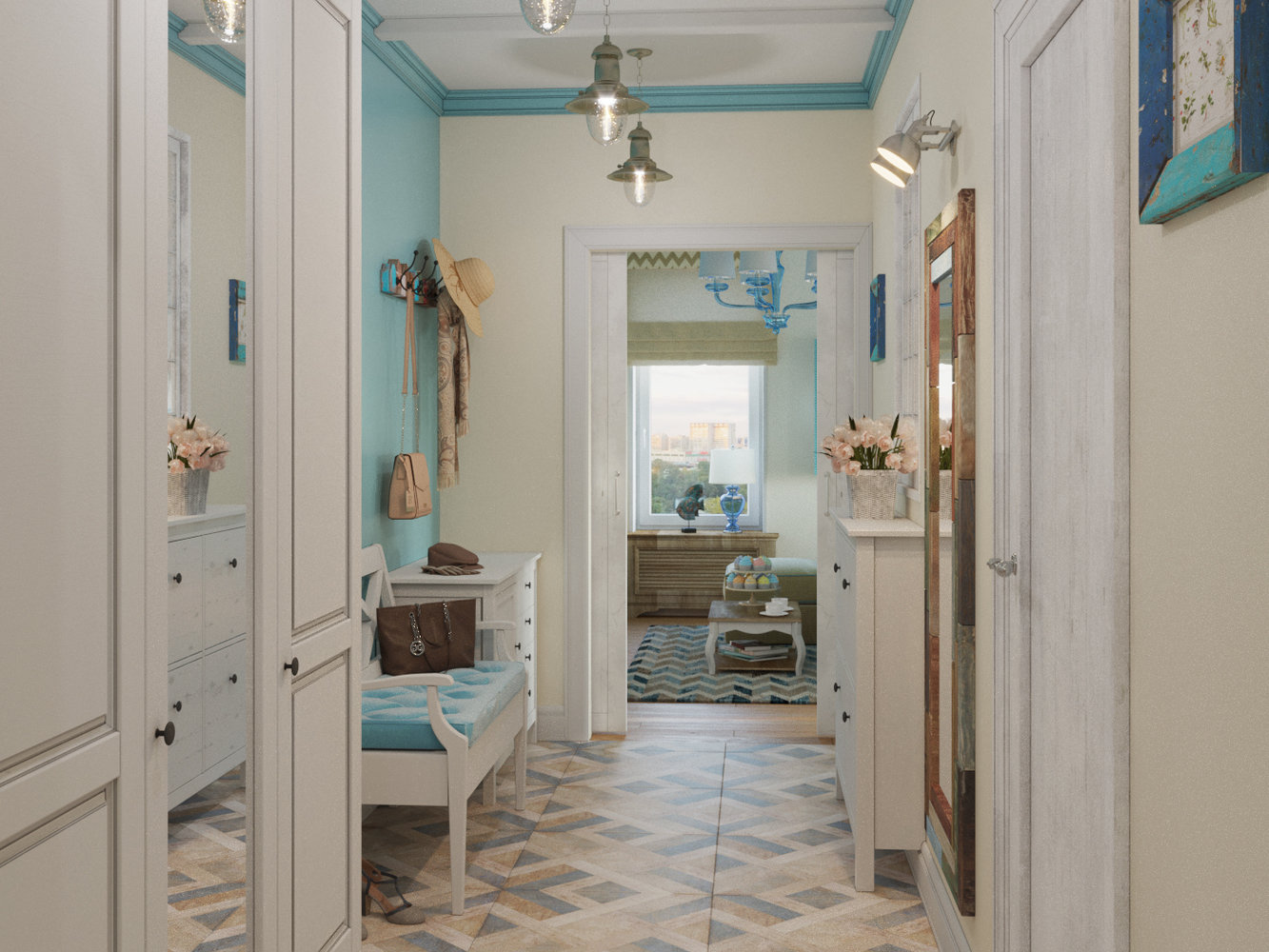 Фотография: Прихожая в стиле Прованс и Кантри, Квартира, Планировки, Аксессуары, Декор, Мебель и свет, Белый, Проект дня, Зеленый, Синий, Голубой, ИКЕА, Московская область, Студия 3.14, Надежда Каппер, 3 комнаты, 60-90 метров, Монолитно-кирпичный, Сантехника, Люберцы – фото на INMYROOM