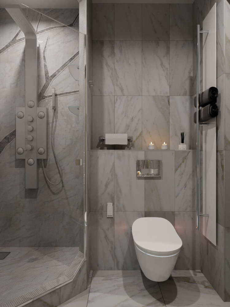 Фотография: Ванная в стиле Современный, Квартира, Проект недели, Москва, Яна Волкова, Юрий Волков, Студия Волковых, 2 комнаты, 40-60 метров, Монолитно-кирпичный, ЖК «Лайнер» – фото на INMYROOM