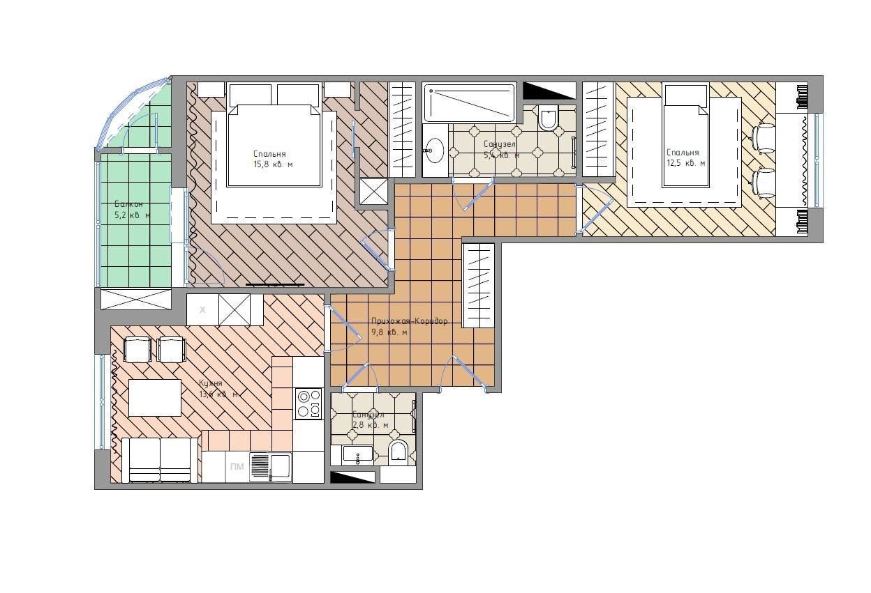 Фотография: Планировки в стиле , Перепланировка, Наталья Преображенская, Анастасия Киселева, Максим Джураев, Студия дизайна интерьеров "Уютная Квартира", П-111М, 2 комнаты, 40-60 метров, энциклопедия_перепланировка – фото на INMYROOM