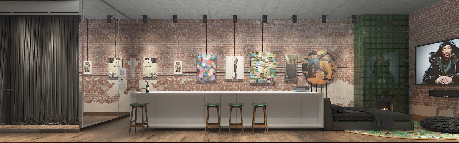Студия для холостяка с картинной галереей и библиотекой4,3