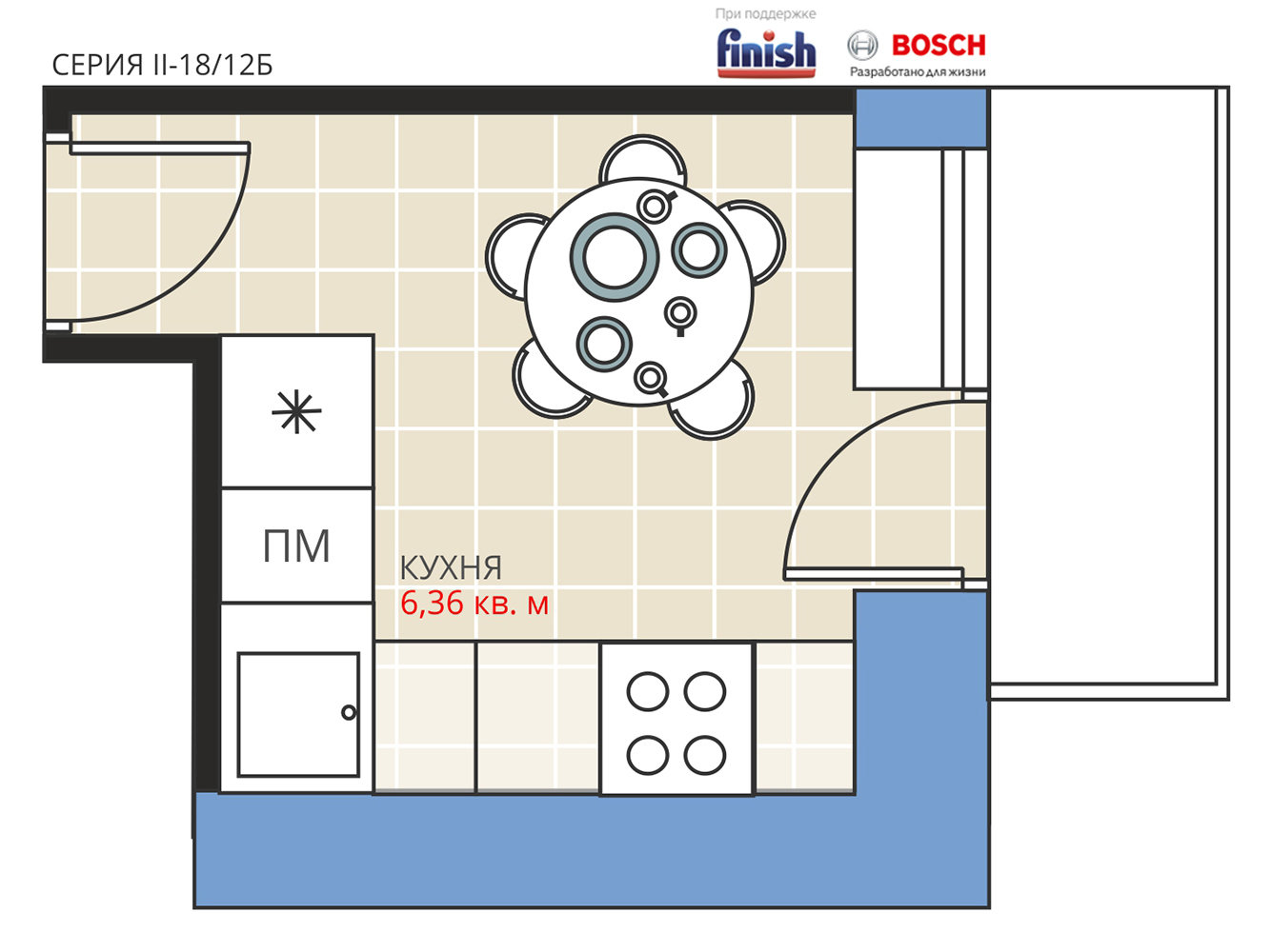 Фотография:  в стиле , Кухня и столовая, Перепланировка, Анастасия Киселева, Максим Джураев, Блочный дом, Finish, II-18-12-Б – фото на INMYROOM