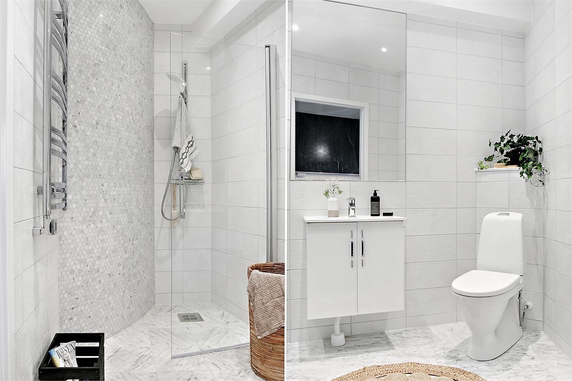 Черно-белая квартира с синей кухней в Швеции4,8