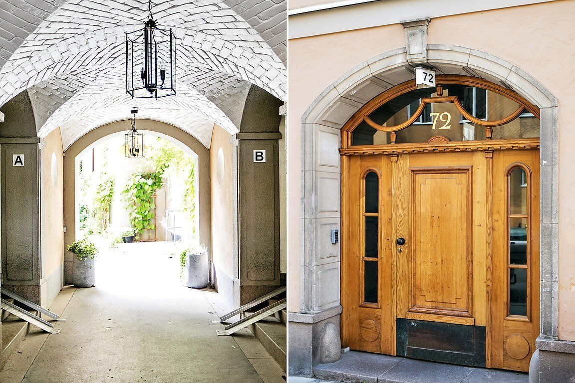 Черно-белая квартира с синей кухней в Швеции5,0