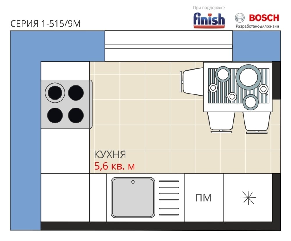 Фотография: Планировки в стиле , Кухня и столовая, Перепланировка, Анастасия Киселева, Панельный дом, Finish, 1-515/9м, Максим Джуреав – фото на INMYROOM