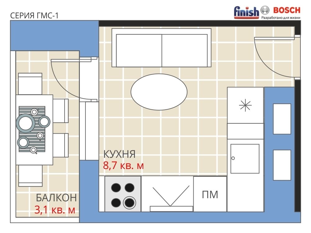 Фотография:  в стиле , Кухня и столовая, Перепланировка, Анастасия Киселева, Максим Джураев, Панельный дом, Блочный дом, Finish, ГМС-1 – фото на INMYROOM