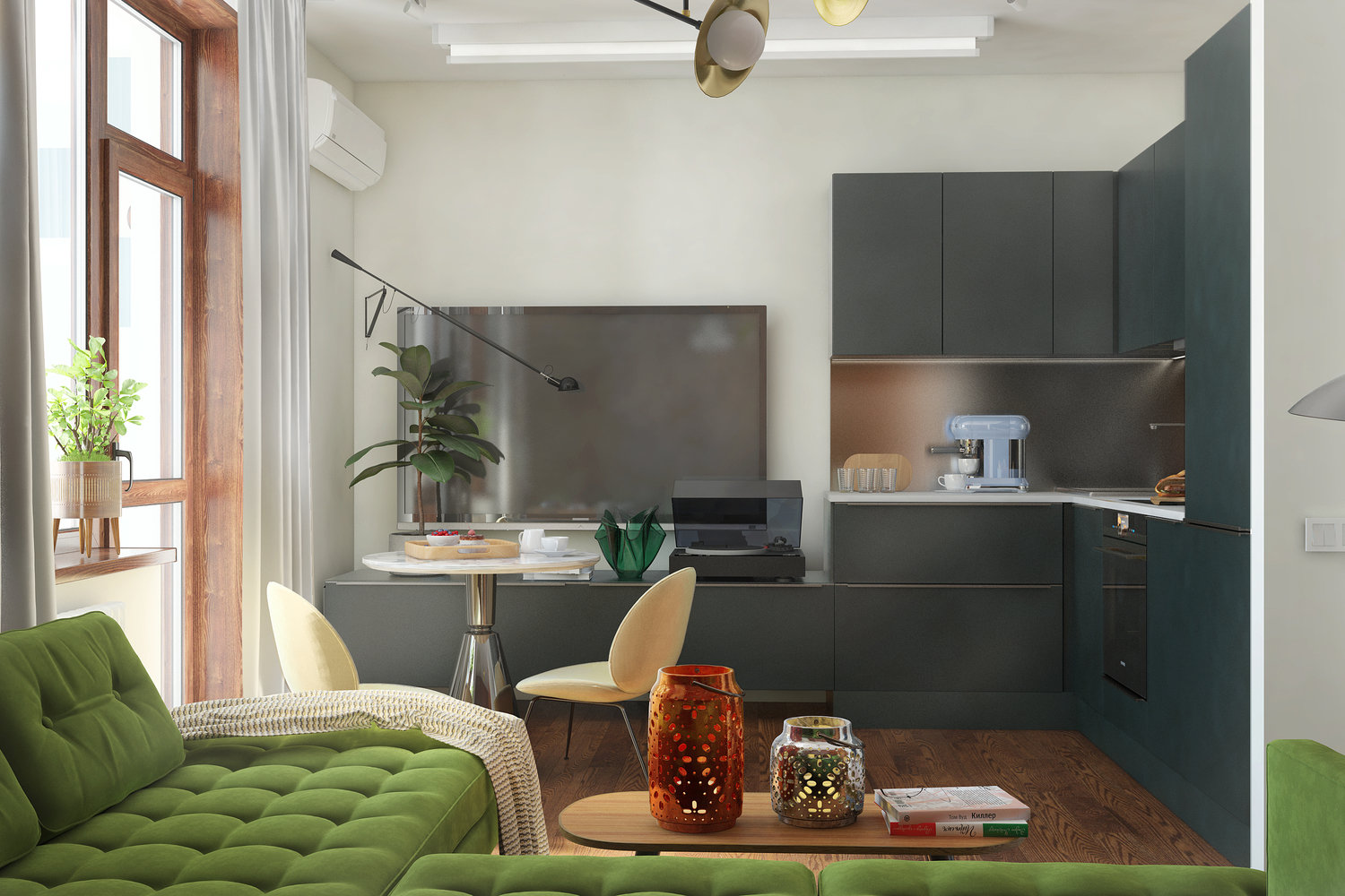Фотография: Кухня и столовая в стиле Скандинавский, Современный, Квартира, Минимализм, Проект недели, Москва, 1 комната, 40-60 метров, Монолитно-кирпичный, Манана Хучуа, ЖК «на Симоновском» – фото на INMYROOM