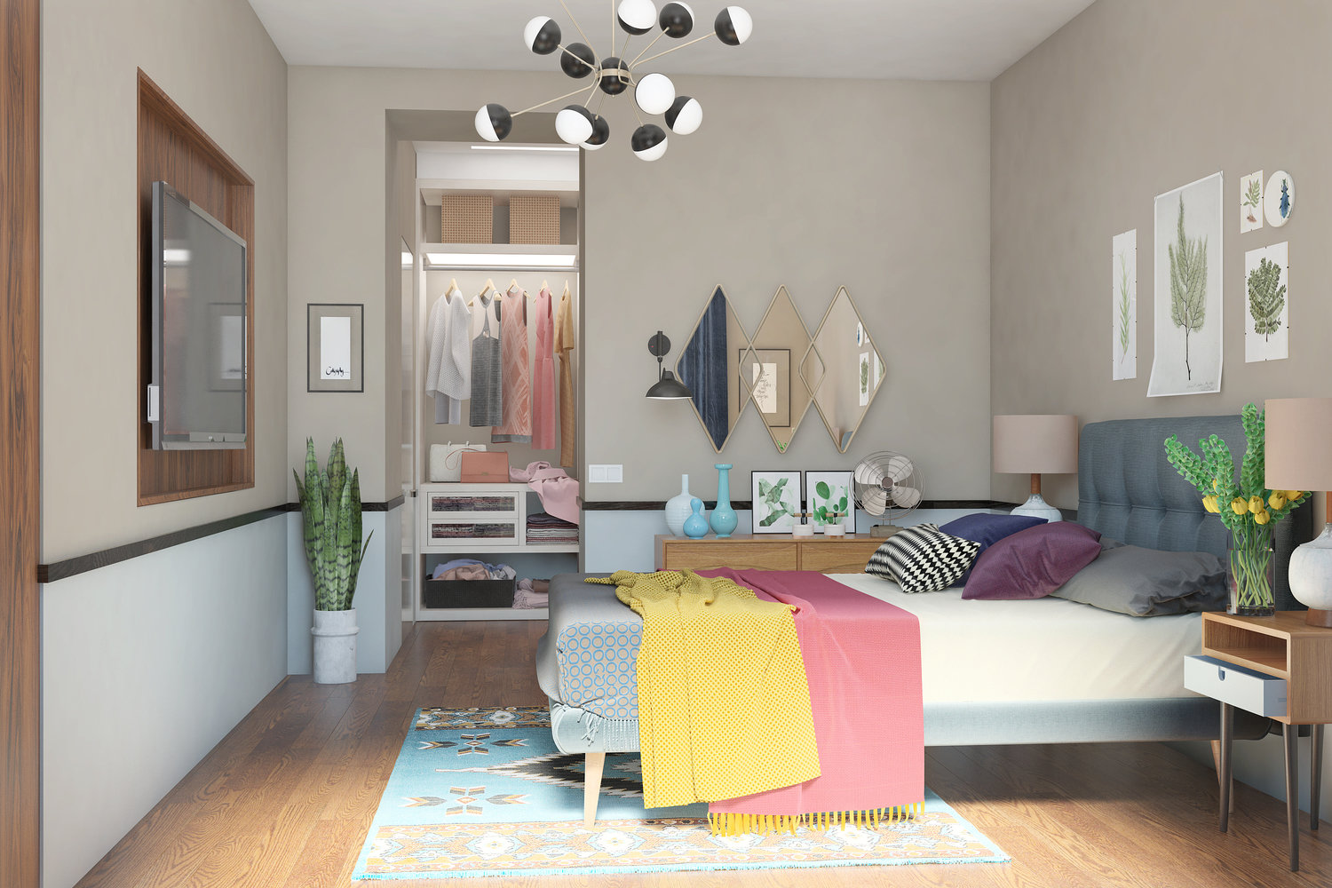 Белые стены и дерево: однушка в стиле mid-century modern4,5