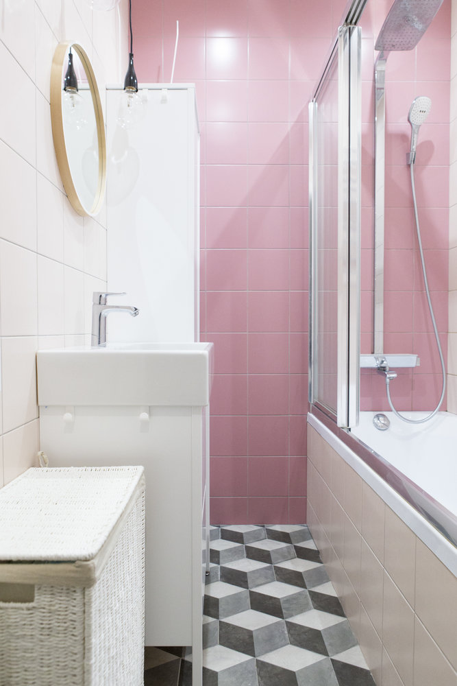 Небольшая двушка с кухонным островом и розовой ванной4,3