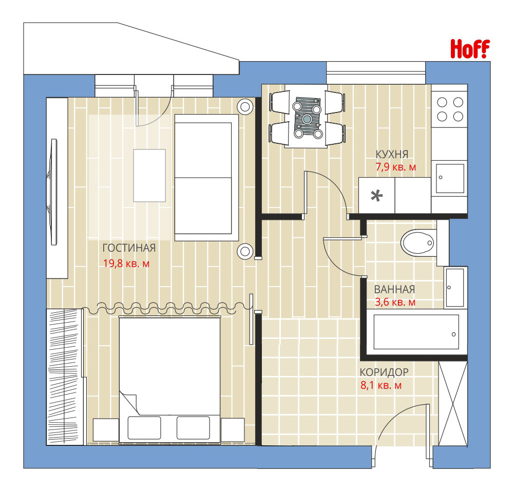 Фотография: Планировки в стиле , Советы, HOFF, П-44, Панельный дом, 1 комната, до 40 метров – фото на INMYROOM