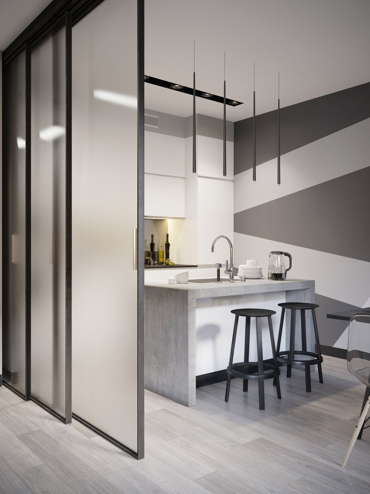 Двухкомнатная квартира в сером цвете: проект в Москве4,4