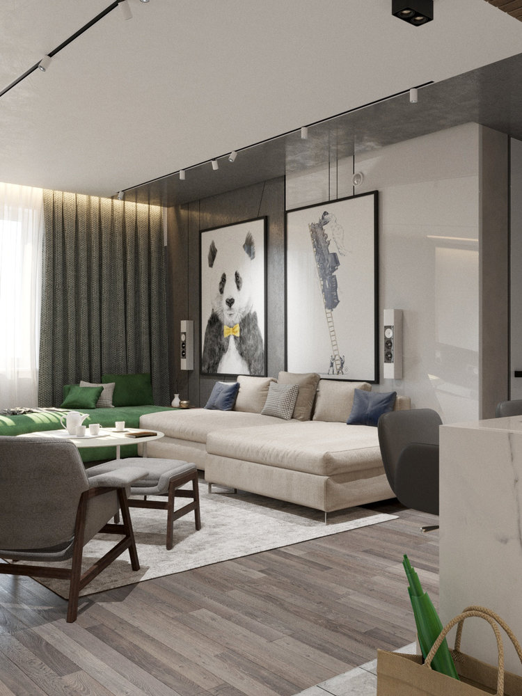Фотография: Гостиная в стиле Современный, Квартира, Проект недели, Павел Алексеев, 3 комнаты, Более 90 метров, Монолитно-кирпичный, «Парк Рублево» – фото на INMYROOM