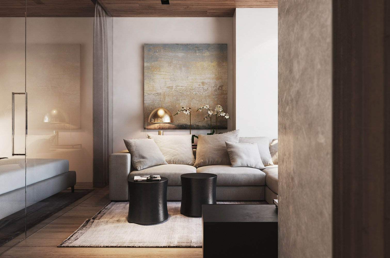 Фотография: Гостиная в стиле Современный, Квартира, Студия, Минимализм, Проект недели, Москва, Монолитный дом, 40-60 метров, ЖК «Мосфильмовский», Артем Бабянц – фото на INMYROOM