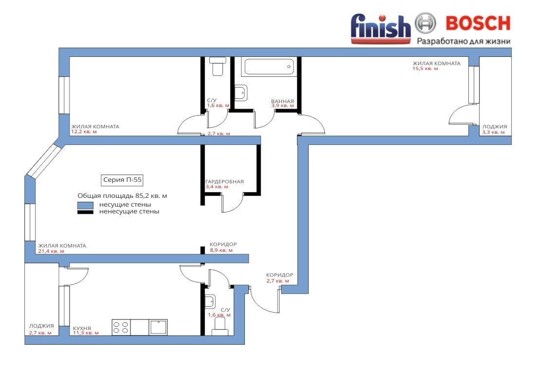 Фотография:  в стиле , Кухня и столовая, Квартира, Перепланировка, Анастасия Киселева, П-55, Блочный дом, Finish, 3 комнаты, 60-90 метров – фото на INMYROOM