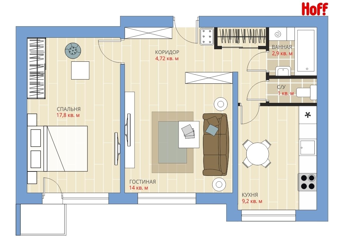 Фотография:  в стиле , Квартира, HOFF, Советы, Перепланировка, HOFF, Анастасия Киселева, Панельный дом, П-3, 2 комнаты, 40-60 метров – фото на INMYROOM