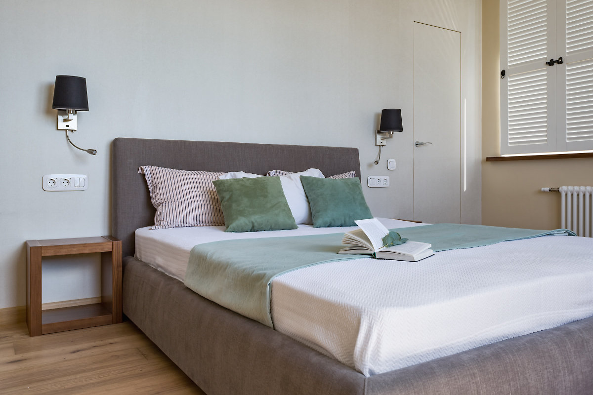 Фотография: Спальня в стиле Скандинавский, Современный, Квартира, Проект недели, Москва, Монолитный дом, 3 комнаты, Более 90 метров, Ирина Ужинцева, ЖК «Дом в сосновой роще» – фото на INMYROOM