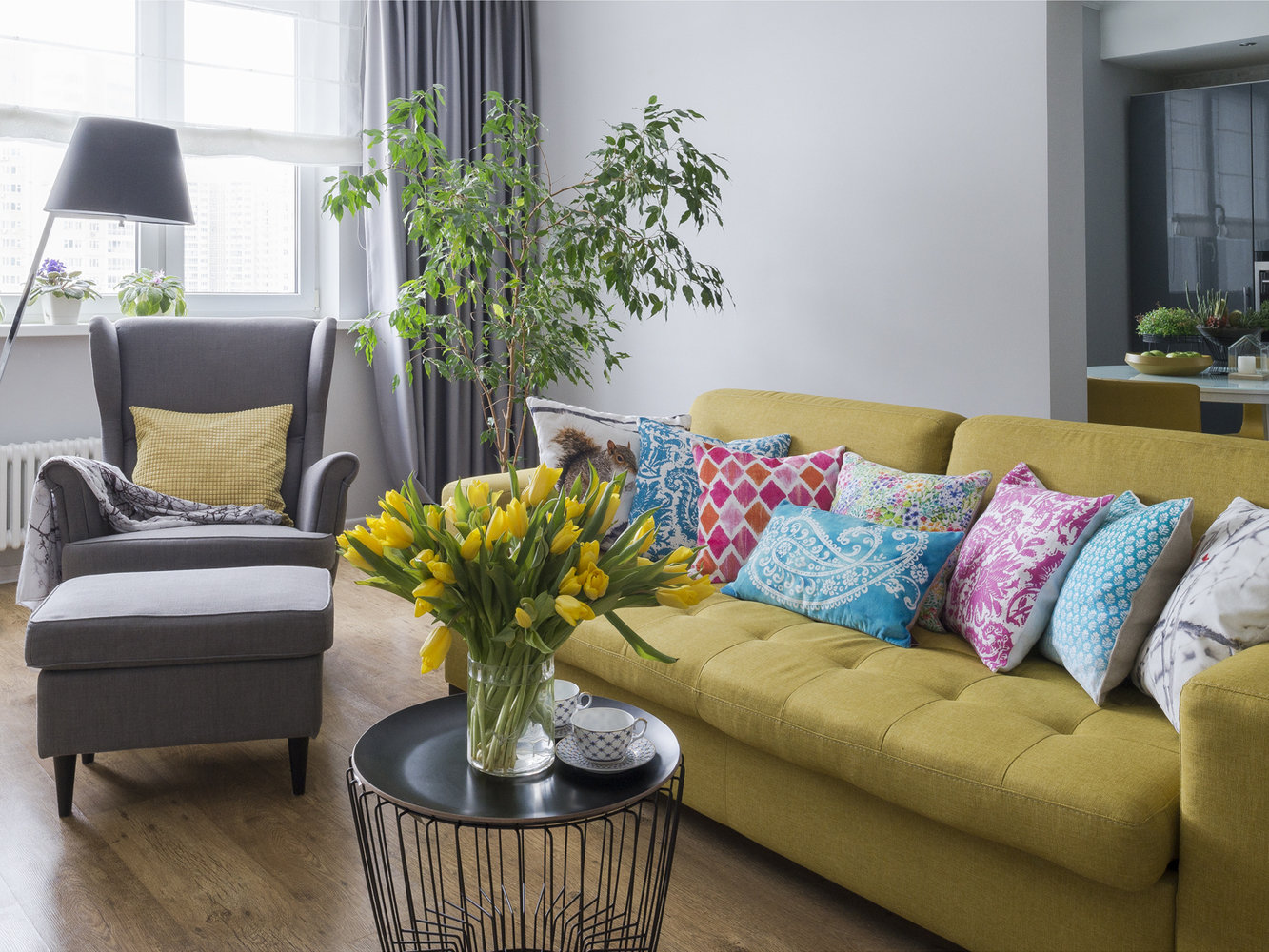 Как сделать серый интерьер по-весеннему ярким4,4