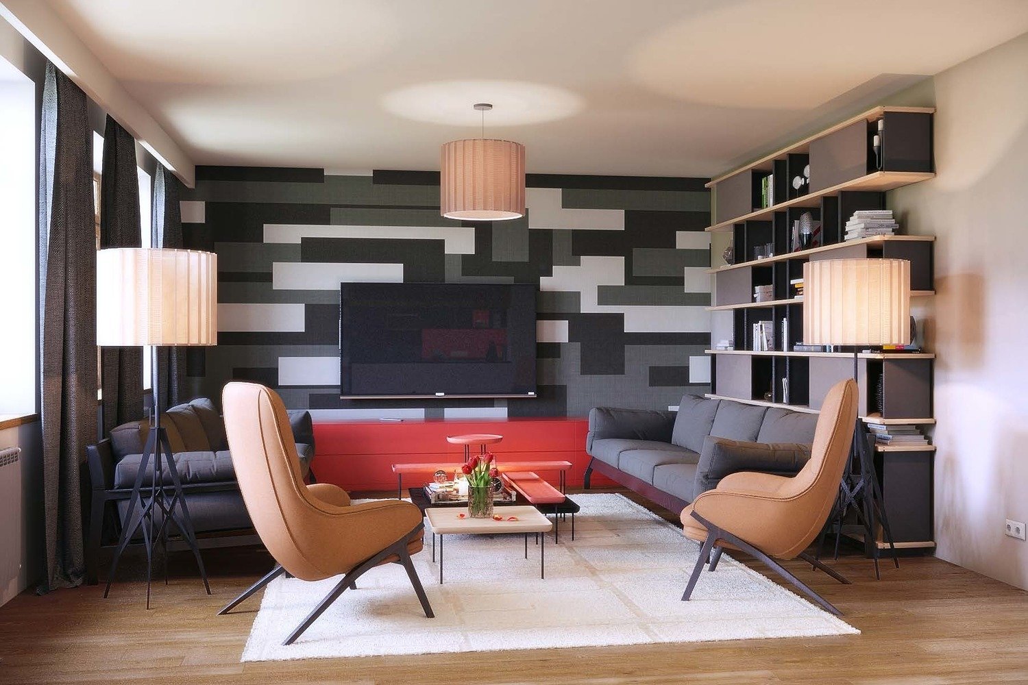 Фотография: Гостиная в стиле Современный, Квартира, Проект недели, Москва, 4 и больше, Более 90 метров, Монолитно-кирпичный, Марина Бутусова, ЖК «Янтарный город» – фото на INMYROOM