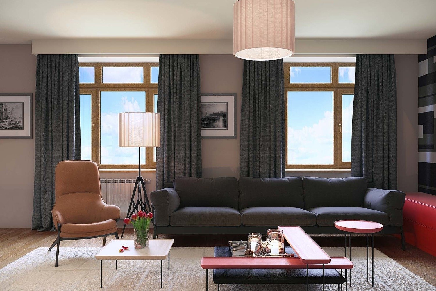 Фотография: Гостиная в стиле Современный, Квартира, Проект недели, Москва, 4 и больше, Более 90 метров, Монолитно-кирпичный, Марина Бутусова, ЖК «Янтарный город» – фото на INMYROOM