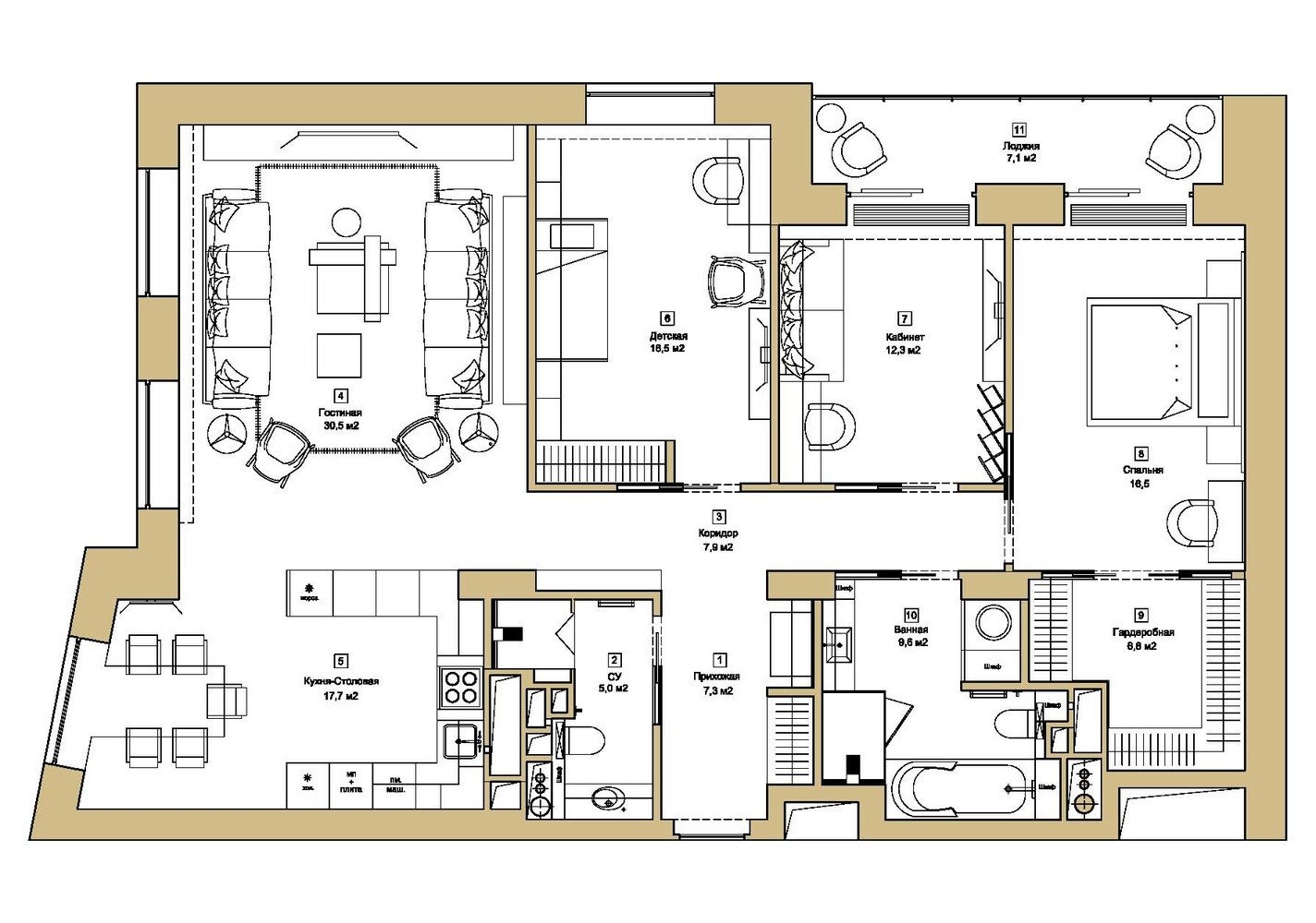 Фотография: Планировки в стиле , Квартира, Проект недели, Москва, 4 и больше, Более 90 метров, Монолитно-кирпичный, Марина Бутусова, ЖК «Янтарный город» – фото на INMYROOM