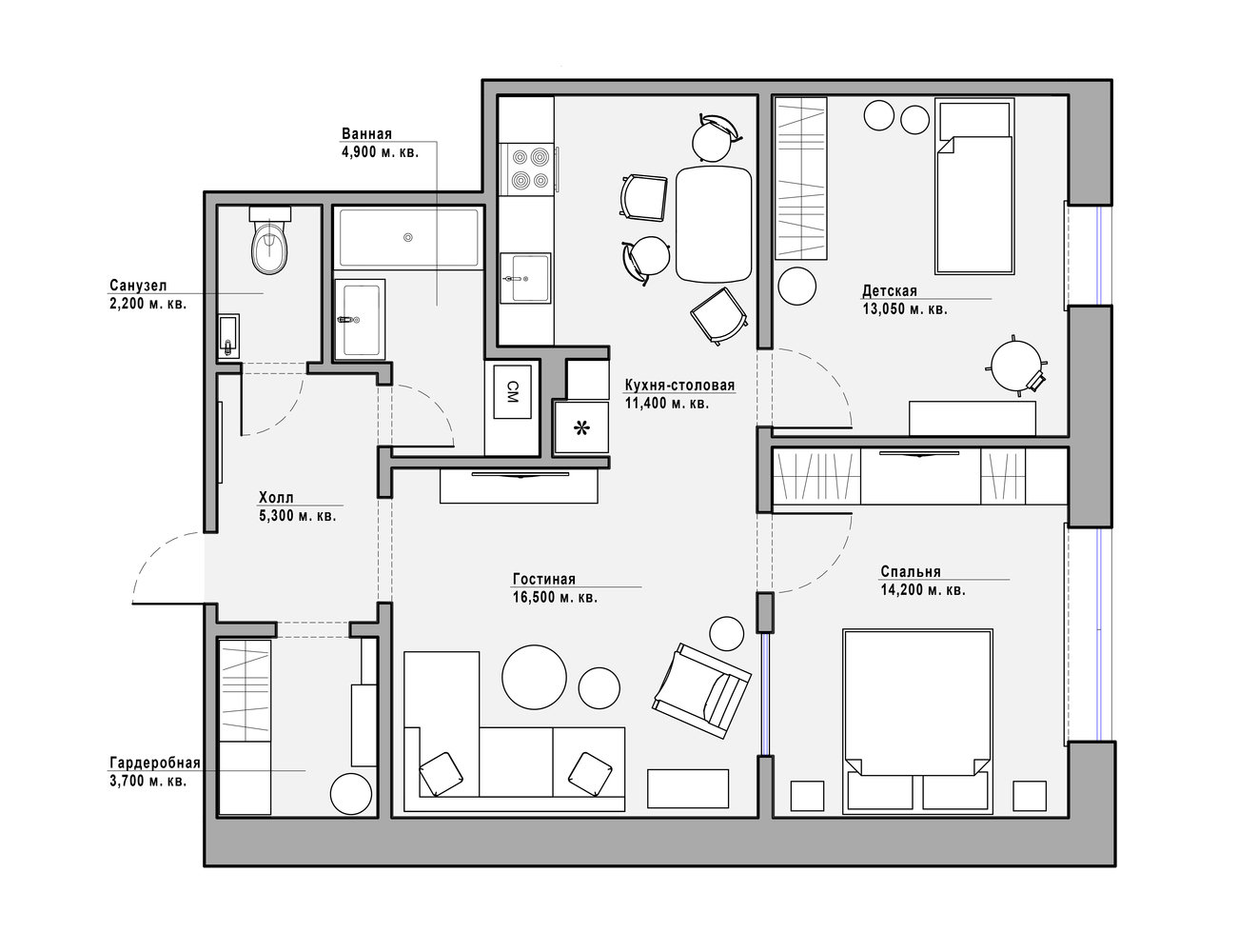 Фотография: Планировки в стиле , Квартира, Проект недели, Подмосковье, Вера Тарловская, 3 комнаты, 60-90 метров – фото на INMYROOM
