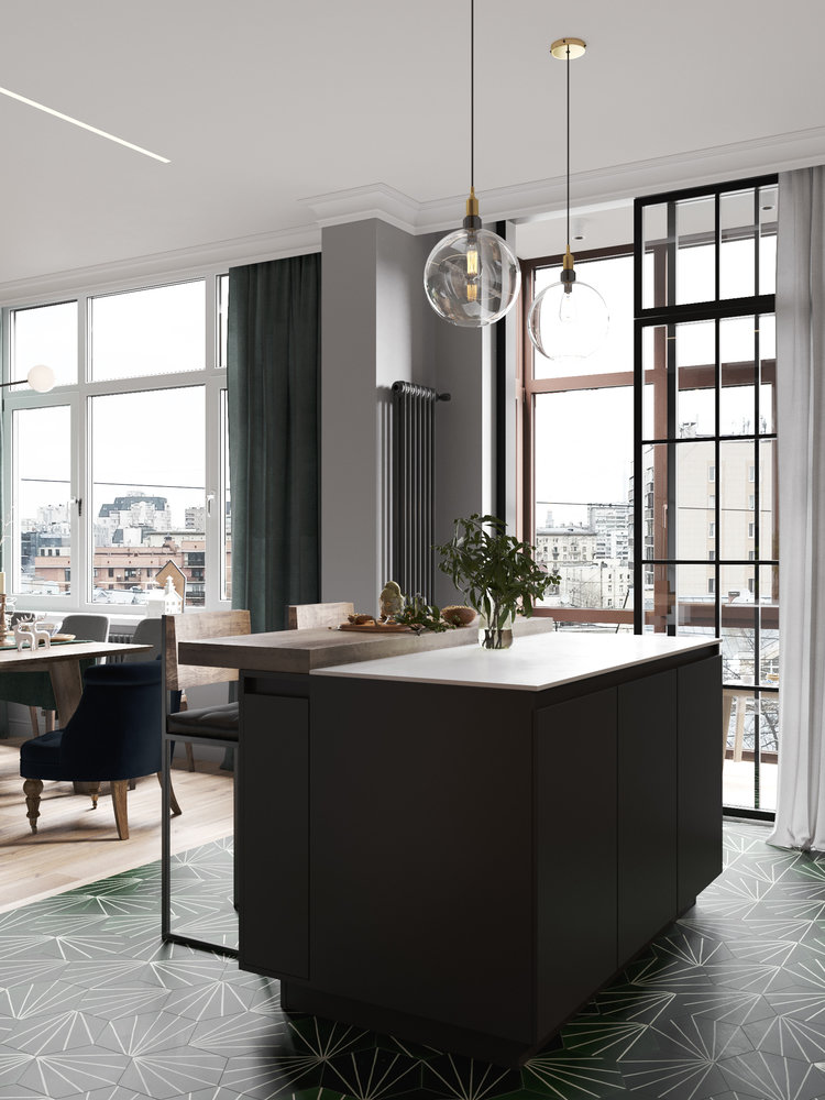 Фотография: Кухня и столовая в стиле Современный, Эклектика, Квартира, Проект недели, Санкт-Петербург, Монолитный дом, 3 комнаты, Более 90 метров, Денис Красиков, Cartelle Design, Анастасия Стручкова, ЖК «Московский квартал» – фото на INMYROOM