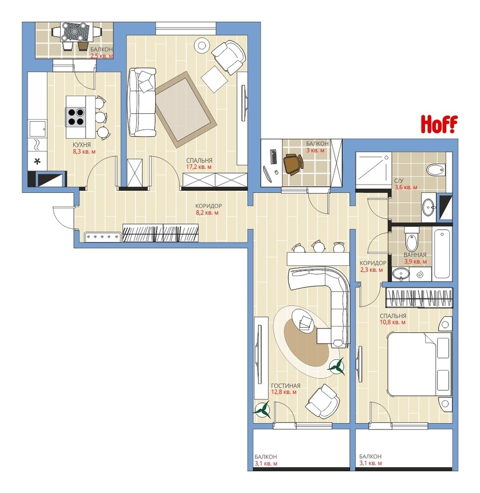 Фотография:  в стиле , Квартира, HOFF, Перепланировка, HOFF, Анастасия Киселева, П-55, Панельный дом, 3 комнаты, 60-90 метров – фото на INMYROOM