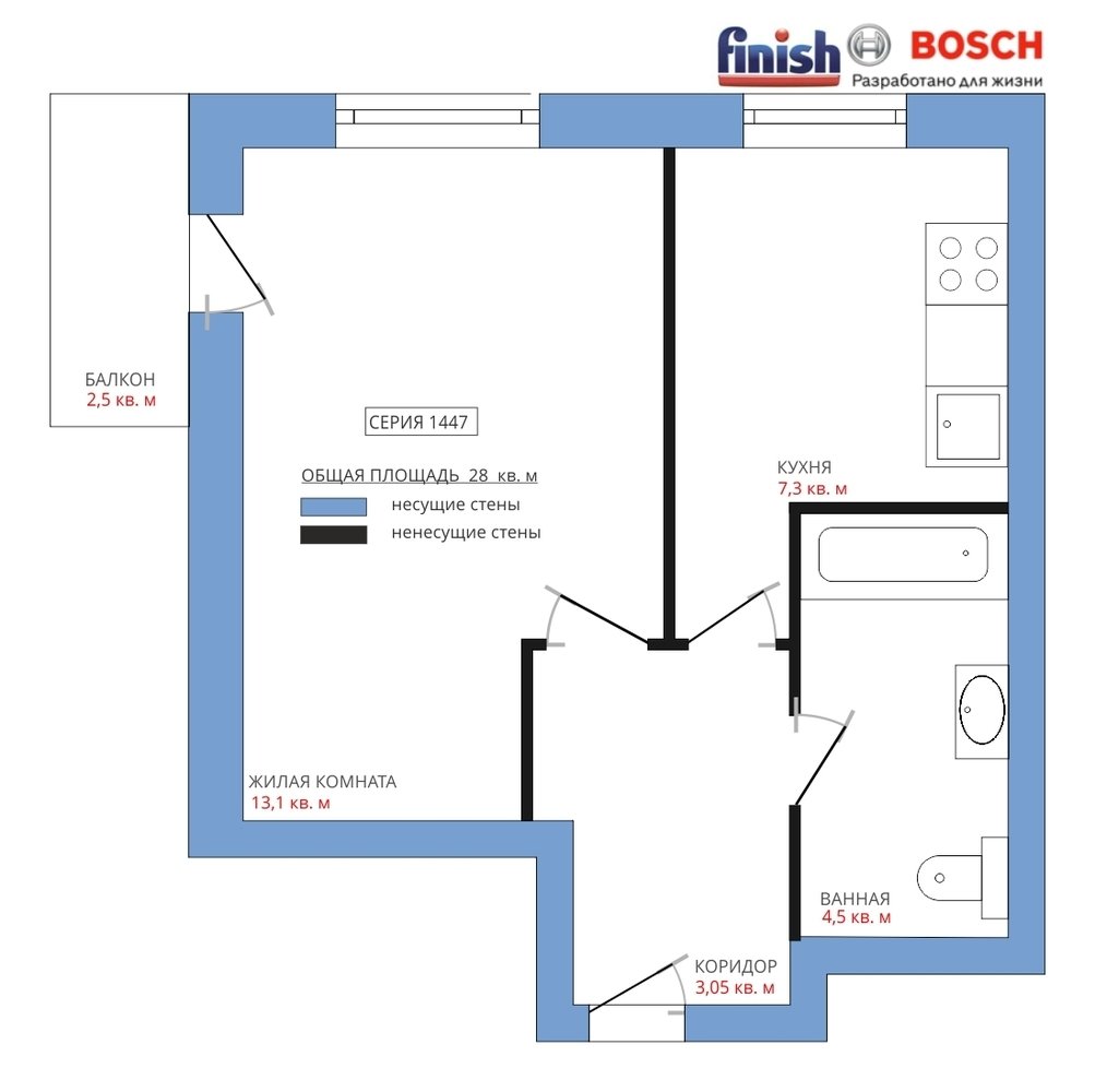 Планировка кухни в старой пятиэтажке: 3 примера + советы3,8