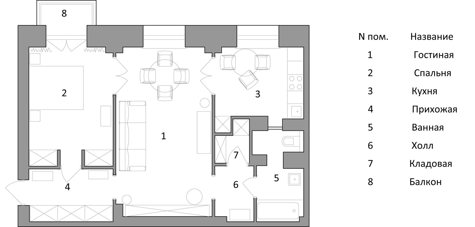 Фотография: Планировки в стиле , Классический, Современный, Квартира, Проект недели, Москва, 2 комнаты, 60-90 метров, Павел Железнов, Индивидуальный проект – фото на INMYROOM