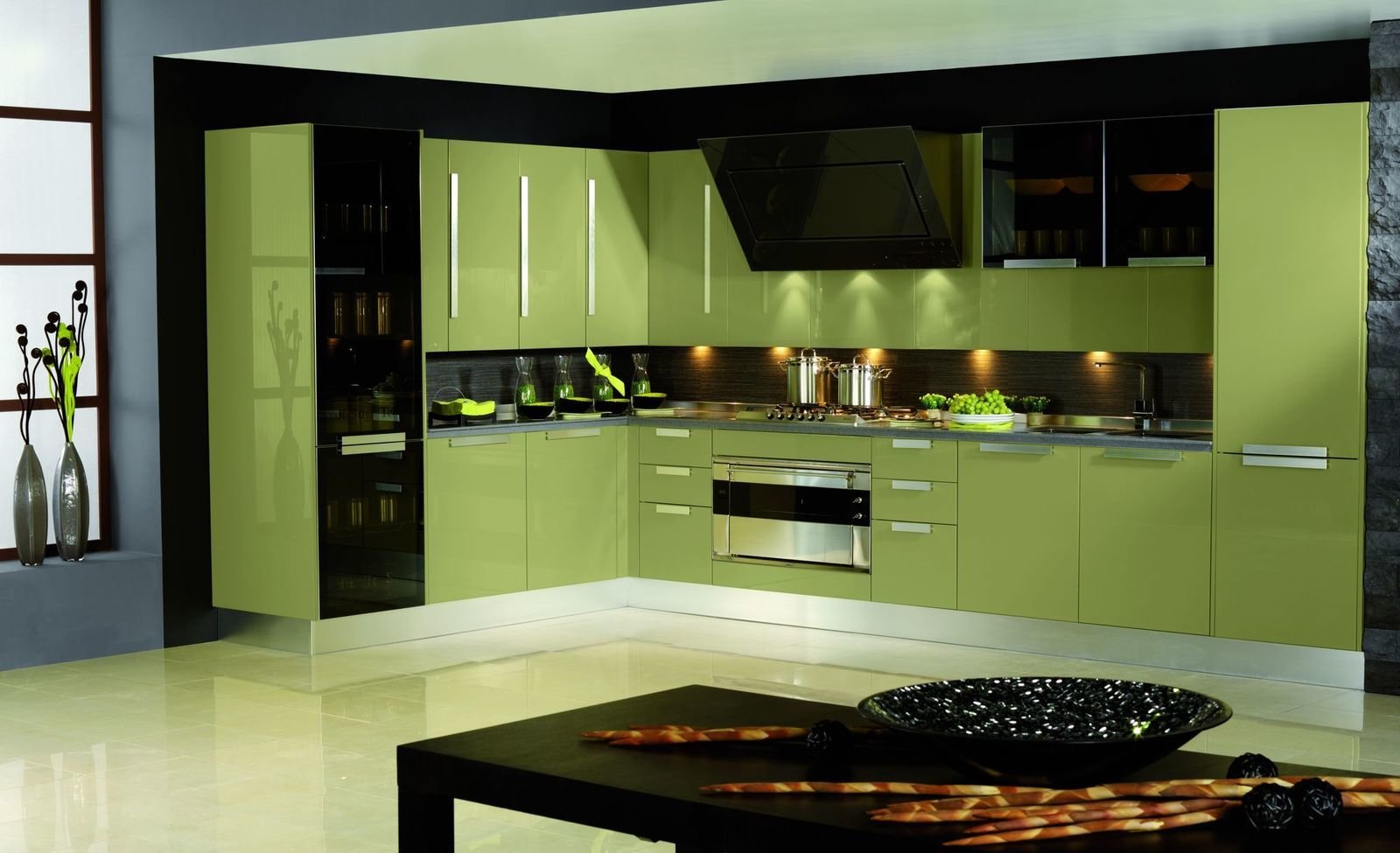 Зеленая кухня в интерьере с фото4,0