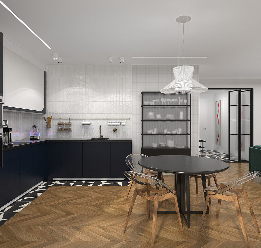 Фотография: Кухня и столовая в стиле Современный, Квартира, Проект недели, Москва, Виктория Золина, 2 комнаты, 60-90 метров, Монолитно-кирпичный – фото на INMYROOM