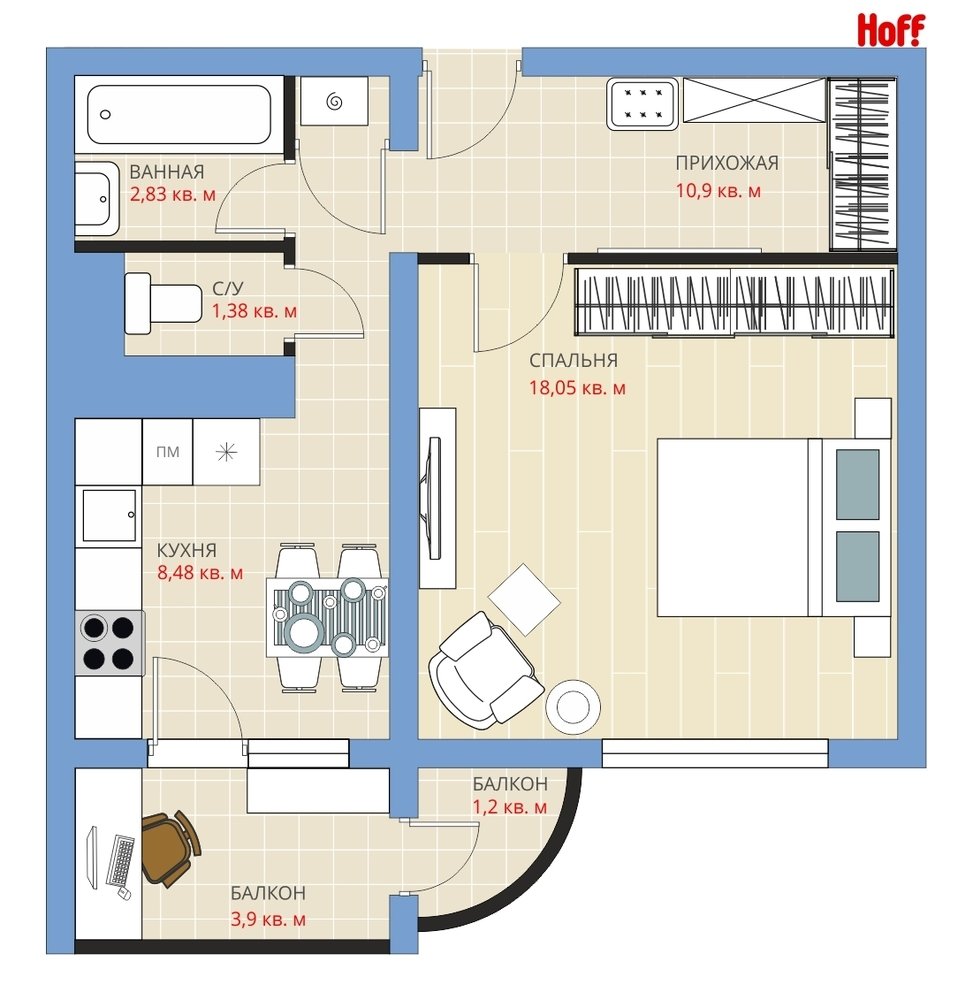 Фотография:  в стиле , Квартира, HOFF, Перепланировка, HOFF, Анастасия Киселева, П-111М, Панельный дом, 1 комната, 40-60 метров – фото на INMYROOM