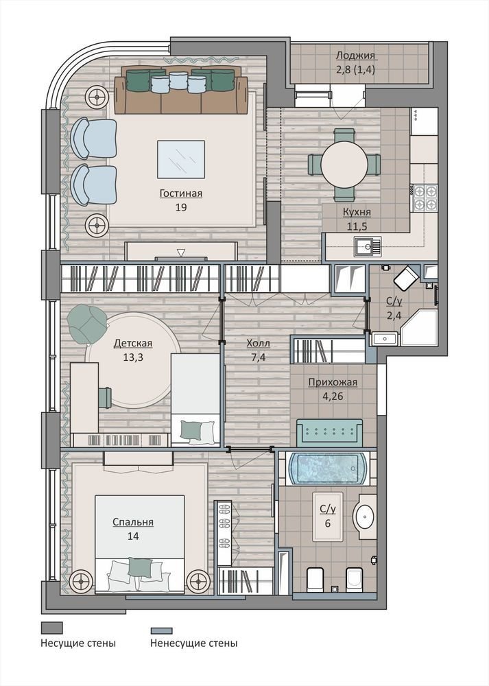 Фотография: Планировки в стиле , Квартира, Перепланировка, Москва, Ирина Леготкина, Монолитный дом, 3 комнаты, 60-90 метров, ЖК «Символ» – фото на INMYROOM