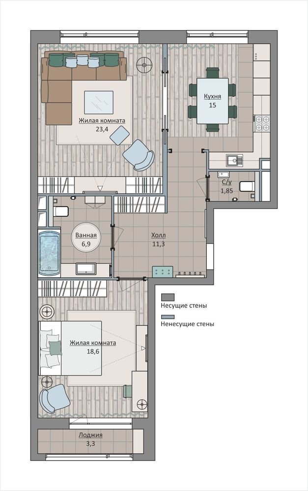 Делаем просторную двушку удобней: 3 варианта планировки4,3