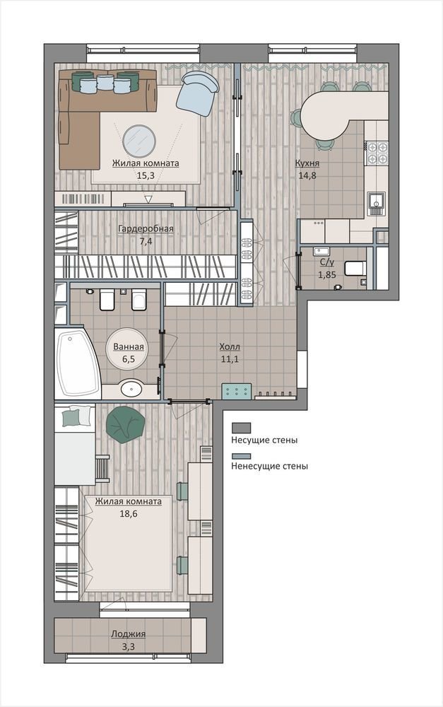 Фотография:  в стиле , Квартира, Перепланировка, Москва, Студия 3.14, Ирина Леготкина, Монолитный дом, 2 комнаты, 60-90 метров, ЖК «Символ» – фото на INMYROOM