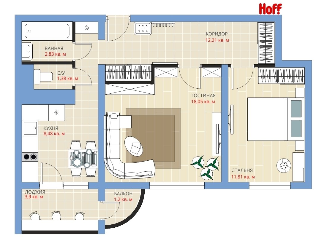 Типовая двушка в «панельке»: 3 способа расставить мебель4,2