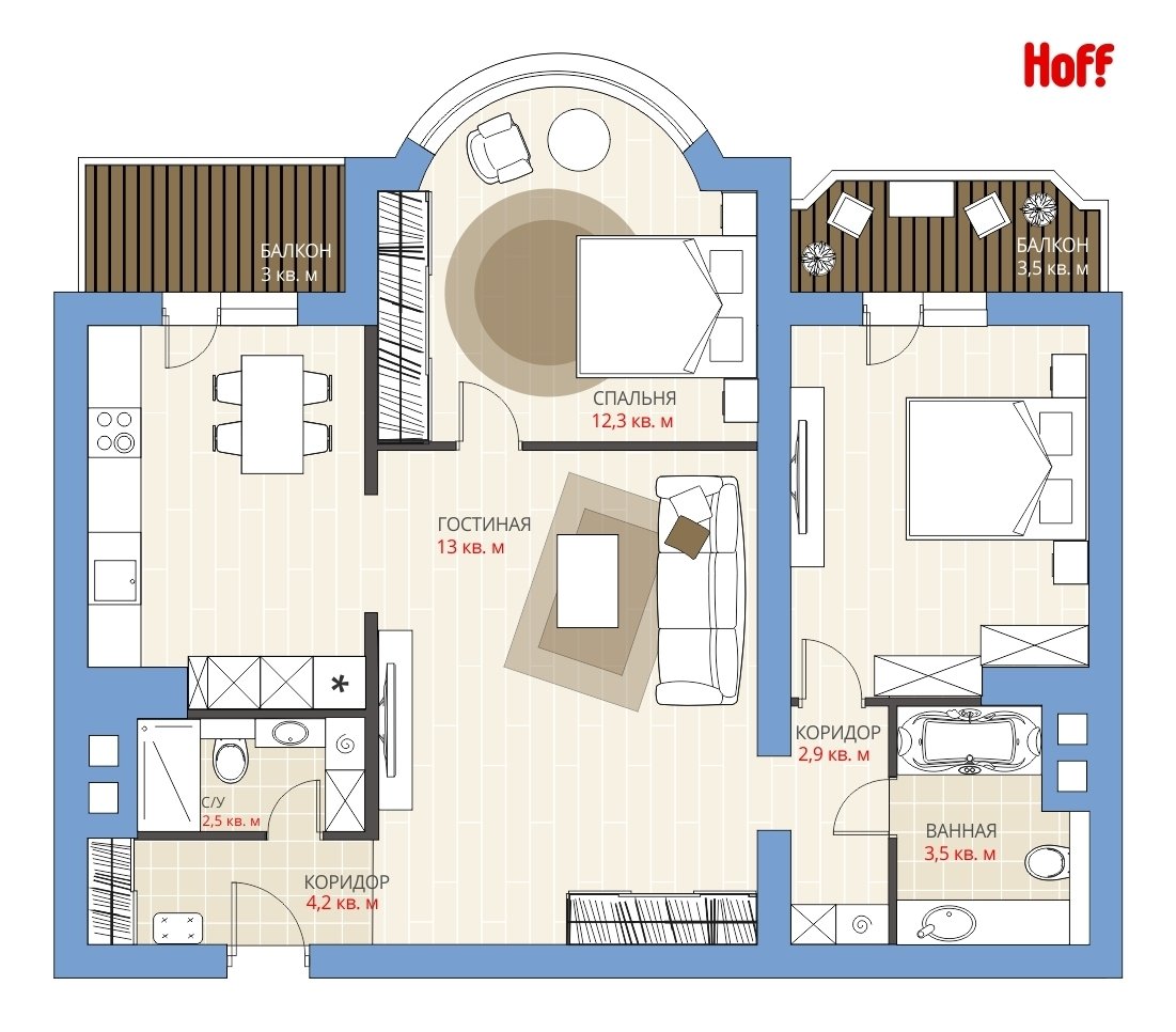 Фотография:  в стиле , Квартира, Планировки, HOFF, Перепланировка, HOFF, И-155МК, Анастасия Киселева, И-155Б, Панельный дом, И-155, 2 комнаты, 60-90 метров, И-155Н – фото на INMYROOM