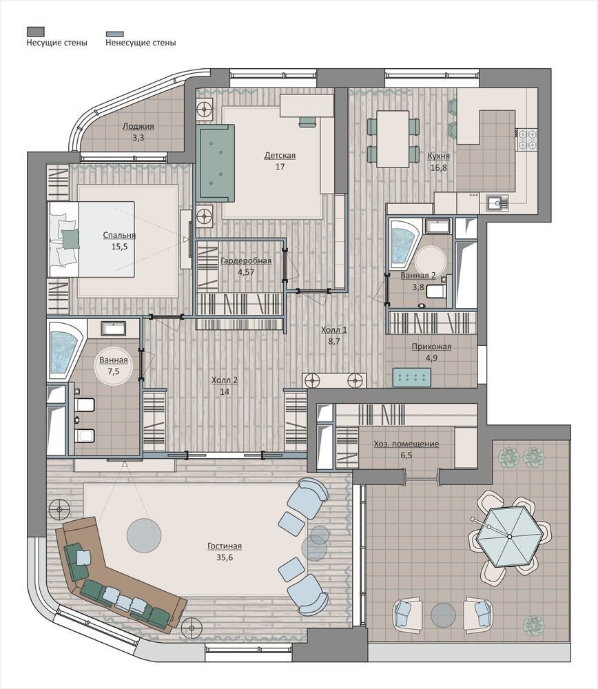 Как дизайнер оформила квартиру с террасой3,8