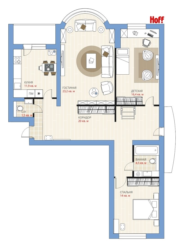 Фотография:  в стиле , Квартира, Планировки, HOFF, Перепланировка, HOFF, И-155МК, Анастасия Киселева, И-155Б, Панельный дом, И-155, 3 комнаты, Более 90 метров, И-155Н – фото на INMYROOM