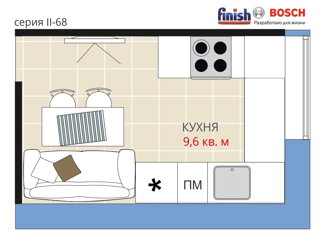 Фотография:  в стиле , Кухня и столовая, Квартира, BOSCH, Перепланировка, Анастасия Киселева, Блочный дом, II-68, Finish, 1 комната, до 40 метров, Евгения Шульженко – фото на INMYROOM