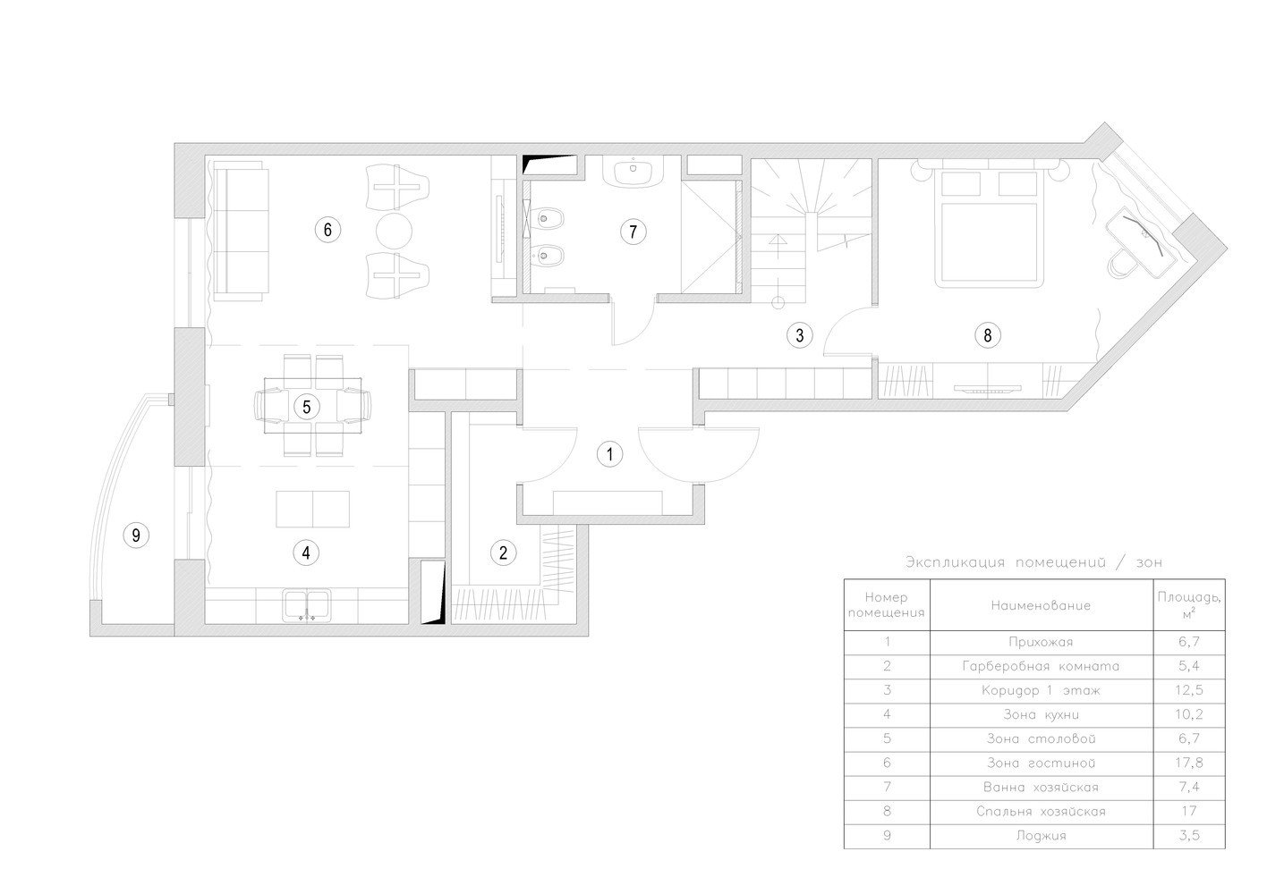 План с расстановкой мебели, 1 этаж