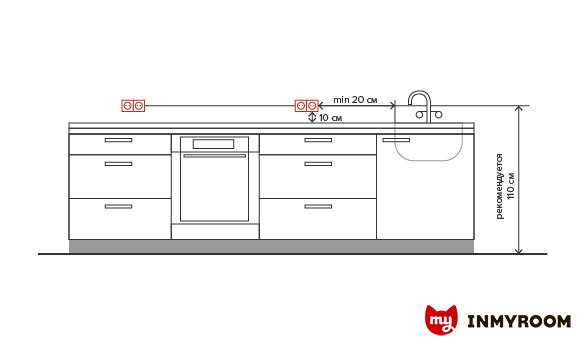 Как правильно разместить розетки и выключатели на кухне3,6