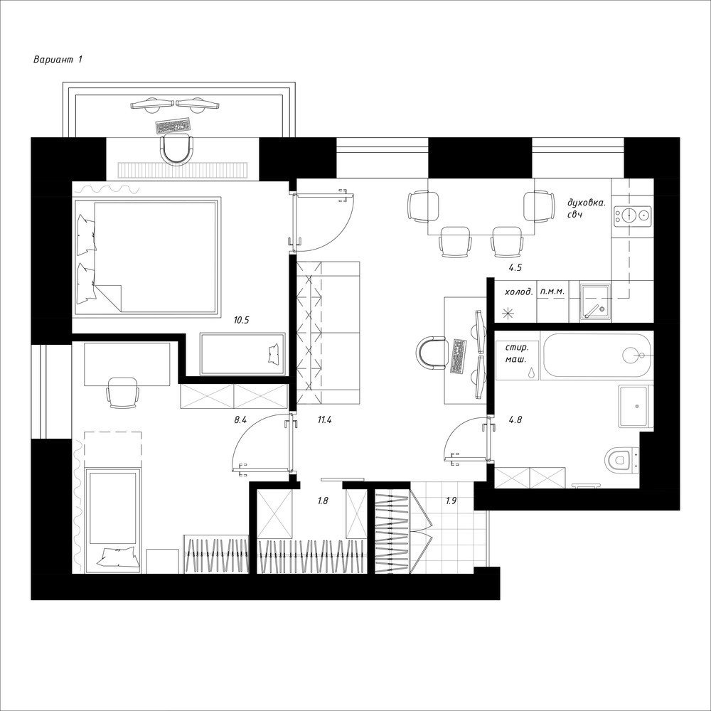 Фотография:  в стиле , Квартира, Перепланировка, Москва, Никита Зуб, Хрущевка, 3 комнаты, 40-60 метров, планировочная среда – фото на INMYROOM