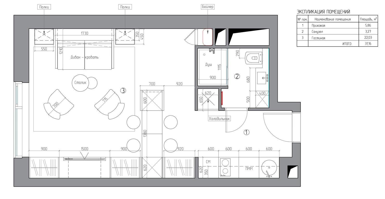 Стильная студия для пары: проект Виктории Киорсак4,0