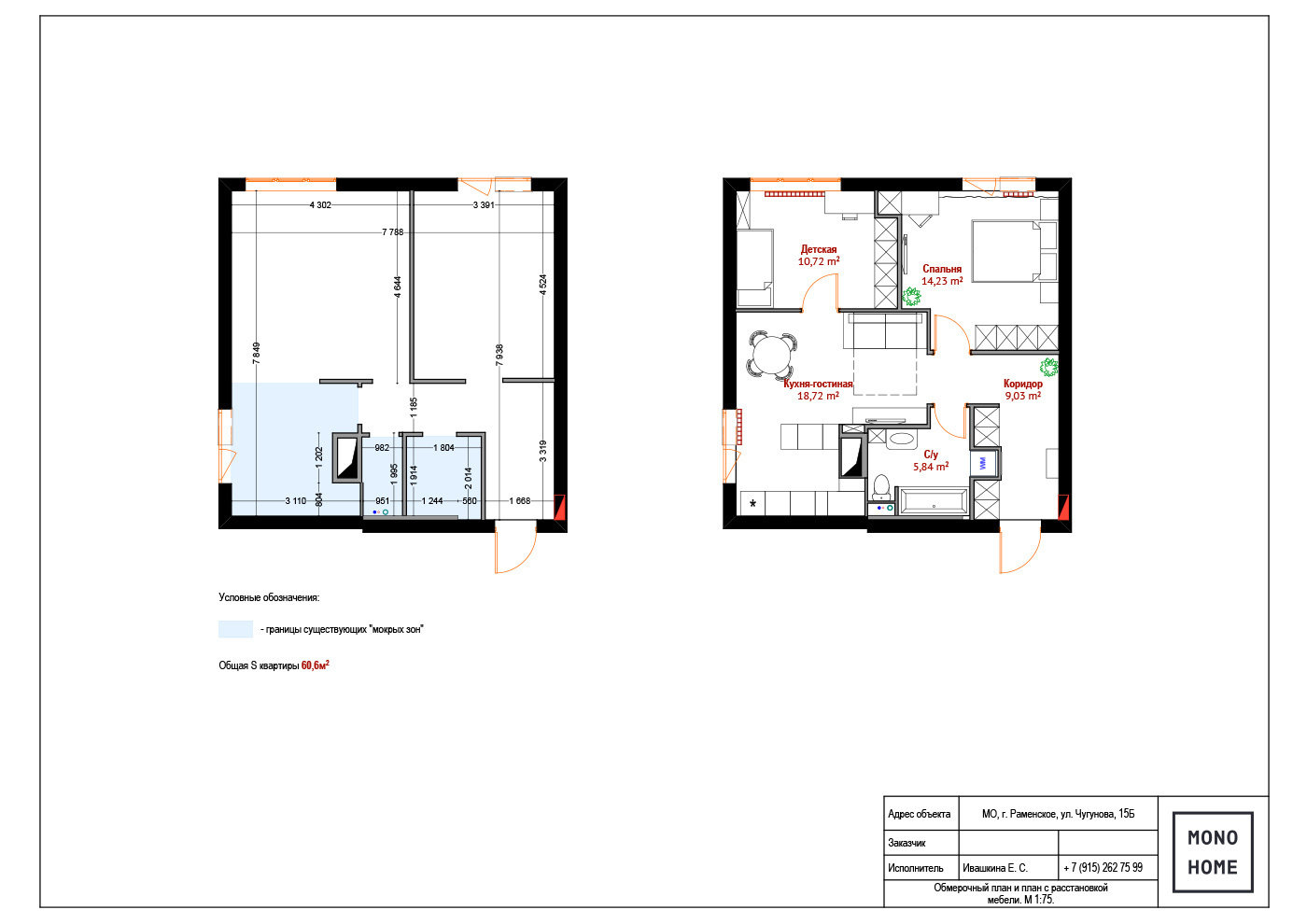 Обмерный план и план с расстановкой мебели