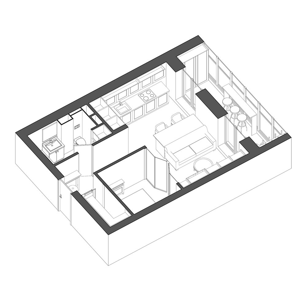 Фотография: Планировки в стиле , Современный, Квартира, Студия, Проект недели, Минск, Монолитный дом, 40-60 метров, ЖК «Маяк», VAE design & architecture – фото на INMYROOM