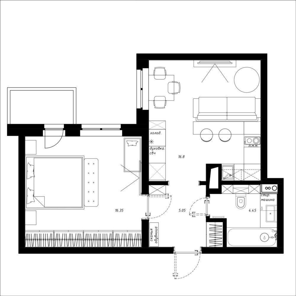 Как найти в однушке место для кухни, гостиной и спальни4,8